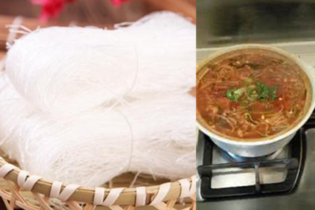 2、将泡好的粉丝用漏勺捞起,沥干上面多余的水分。