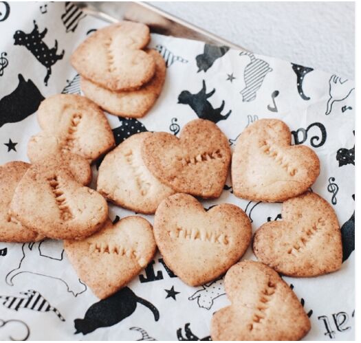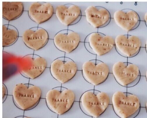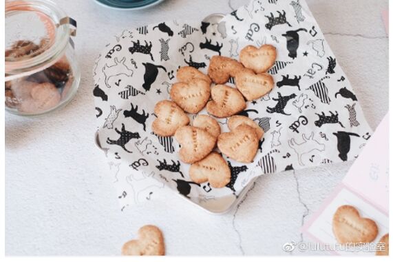 4、预热烤箱180度,轻挪至烤盘垫上油纸,饼干印好印章;
