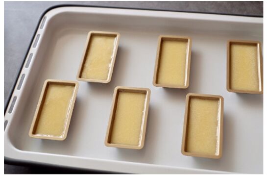 1. 将中粉过筛两遍,费南雪模具内涂一层黄油,做防黏处理;
