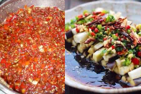 4、把调制完成的酱汁淋在蒸好的茄子条上就可以食用了。【女物原创未经允许,谢绝转载!】
