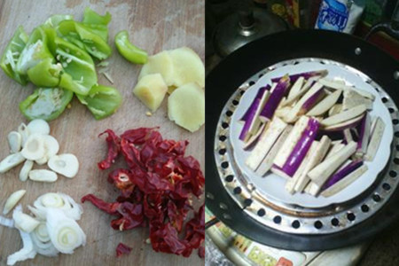 1、准备的食材有茄子、青红辣椒、葱蒜、干辣椒。
