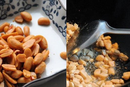 宫保鸡丁之所以好吃就是因为里面有果仁,花生的果仁本身就非常的香。在准备做宫保鸡丁之前一定要把果仁去掉皮炸好,这样才能更脆香。但是在炸果仁的时候教你个小的方法就是稍微放上一点啤酒,这样能有不一样的香味。