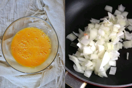 我们先将洋葱去皮并切成碎末,同时在锅中加入一些油,把洋葱放入锅中炒制,直至炒出香味,我们便可以将事先准备好的玉米罐头也倒入锅中一起翻炒。这时,我们可以将胡萝卜和香肠切成丁状倒入锅中。
