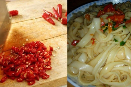 先准备好一锅烧热的水,将河粉放进去焯熟,将上面的水份沥干净放在盘子上面。准备一些大蒜和辣椒,将它们放进油锅里面炒香,还需要加入适量的盐和鸡精进去。烧好的热油淋在河粉上面。