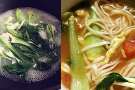 需要准备好青菜、番茄,将青菜洗干净放在一边备用,番茄需要切成块状。锅里面倒入适量的水,加入番茄放进去煮。