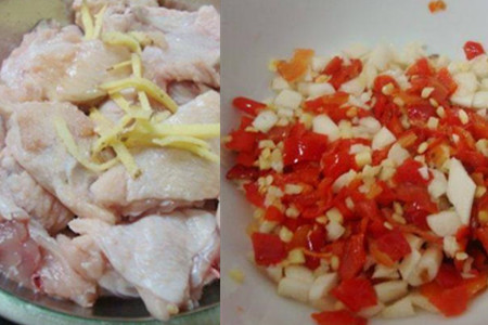 食材:鸡中翅250克、金针菇50克、剁椒、姜、蒜。