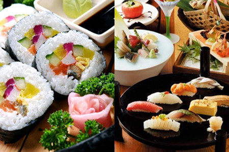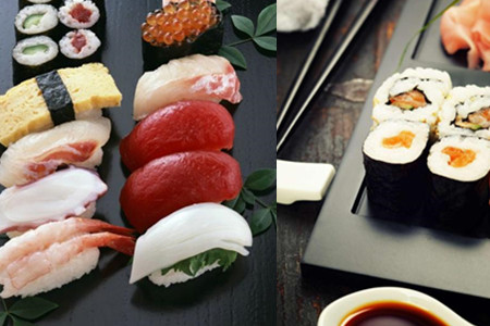 日本寿司一般以鲜、奇为特点。鲜即新鲜,选取新鲜的鱼类,如三文鱼、鳕鱼等,用锋利的日本刀斜70度切割大小合适的鱼肉,立即取材即保证了食品的原汁原味还保证了食品的安全卫生。奇是指厨师们做出来的寿司造型独特新奇。日本寿司的做法非常简单易学,事先将寿司米煮成米饭状备用,取专门做寿司的珠帘,平铺到案板上并放上一层海苔片。