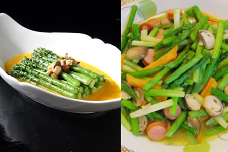 芦笋与其它食材搭配得好,会让营养发挥得更好,芦笋炒鸡蛋就是一道完美的搭配:在营养方面很均衡,在外观视觉方面,翠绿的芦笋与金黄的鸡蛋,也很诱人食欲。下面给大家介绍一下这道家常菜的做法: