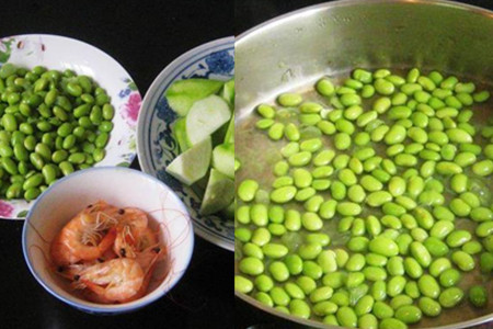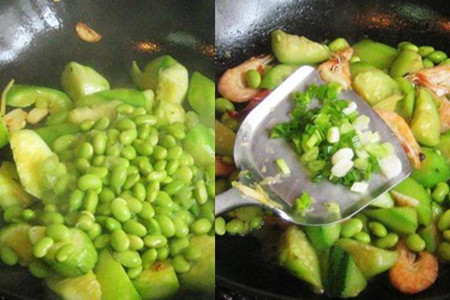 第三种:毛豆丝瓜炒海虾。