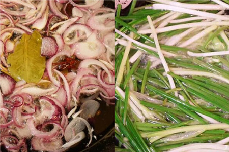 葱油材料:葱100克,洋葱200克,八角10克,桂皮10克,花椒粒10颗,香叶5克,食用油1000克。