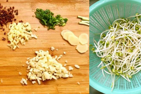 首先我们将鱼清洗干净挖掉内脏,然后片成薄片。如果不敢杀鱼或者是觉得这个步骤太麻烦了,可以买鱼的时候叫师傅清理好,自己回家再洗干净。洗净之后我们将鱼片用淀粉、鸡蛋清、料酒抓匀。大蒜用刀拍碎、姜切成片、大葱切成段、芹菜切成小段备用。接着将黄豆芽放在开水里煮三分钟左右,然后捞起来放在凉水里过一下,接着放入装鱼的碗里备用。