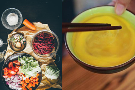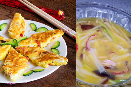 首先将生菜、香菇、胡萝卜、芦笋、大葱等配料均洗干净切成细丝,过水煮熟即可。三五个鸡蛋打散,将煮熟的食材加入鸡蛋液中一起搅拌,放入食盐、胡椒粉、味精调味。