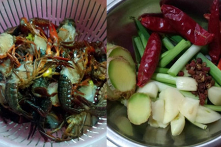 食材:小龙虾500克、大葱、大蒜、姜、干辣椒、花椒、黄酒、香菜、蘑菇精、豆豉、生抽、盐、油。