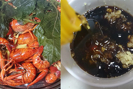 十五分钟后,取出蒸熟的小龙虾,拿掉表面的紫苏叶,将小龙虾摆入盘中。取适量生姜和大蒜,擦成细蓉,装入碗中,加适量白砂糖、盐、香醋、生抽、香油,用筷子或者汤勺拌匀,喜欢吃辣的可以另外加一些红油。小龙虾剥掉外壳,蘸上酱料即可食用。