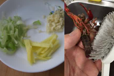 首先,同样是将小龙虾清洗干净,沥干水分备用。将蒜剁成末,香葱洗净切段,生姜切成薄片。