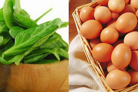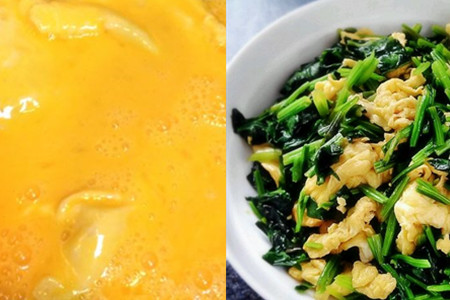 然后将之前切好的菠菜放进锅里面翻炒,由于菠菜比较容易熟,建议不要翻炒太长的时间,这样菜色就会变得难过。翻炒大约2分钟左右,可以将之前已经煎好的鸡蛋加入进去一起烹饪了。