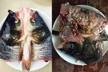 首先,将刚买回来的鱼头洗净血水,把处理好的鱼头切成两半,但是不能切段分开。在鱼骨上斜切几刀,这方便鱼肉入味。