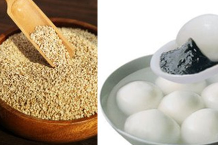 除了这两种做法以外,我们经常能见到将白芝麻洒在食物表面提味,点缀,还有南方的汤圆也是用黑芝麻做成的。