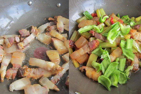 豆角干一定要泡透泡软,用凉水泡比较好。腊肉用温水清洗可以更好地去掉表面的污垢。由于腊肉会超炒出很多肥油,所以煸炒腊肉的时候可以少放点油,这样更健康。
