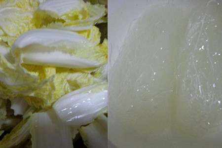 娃娃菜清洗干净,掰开,切段。粉丝用清水泡起来。