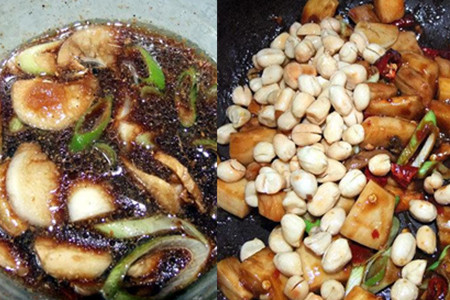 炸花生要用凉锅凉油。杏鲍菇切大块一点,因为炒制过程,杏鲍菇水分会流失,体积会变小。