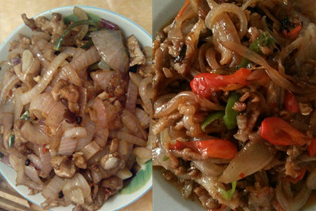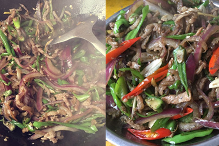 制作步骤:首先将瘦肉切丝,洋葱剥皮切条,青椒和辣椒留籽切条,生姜和蒜蓉切末备用。然后热锅倒油,先爆香姜末和蒜末,再把瘦肉丝倒入翻炒。待瘦肉丝变色后,放入洋葱、青椒和辣椒,加盐和酱油调味。翻炒十分钟左右即可出锅。