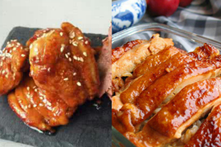 日式照烧鸡排也是日本料理中的代表。食材上选择两个大鸡腿,洗净之后去骨。为了让它更易烹调,将肉比较厚的地方切花刀、将肉切薄。因为鸡肉本身有油脂,不粘锅中不需要加油,待锅热后将鸡肉的鸡皮朝下放入锅中,采用中小火慢煎,待鸡皮被煎到变色的时候将鸡肉翻面,转小火。根据自己口味准备调味料。再将火调小一点,盖上盖子焖大致四到五分钟,将汁收干,淋上酱汁即可。