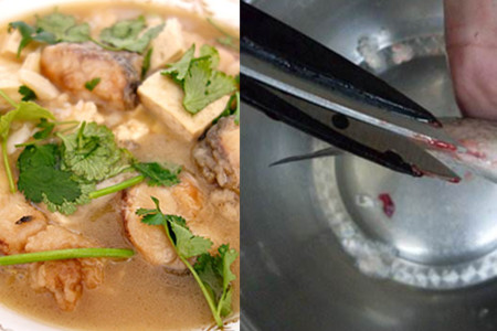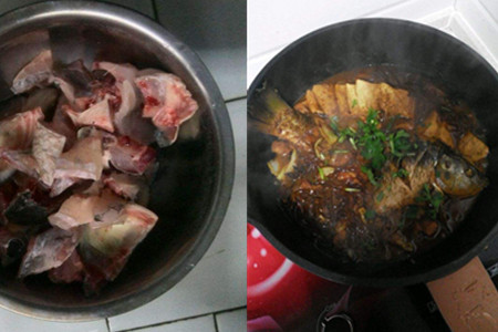 这时,我们需要处理整条鱼,先将它的鱼头去掉,然后将它的鱼鳞和鱼鳍刮掉,同时再将它的腹部划开,将里面的内脏取出,然后用清水清洗干净。之后,再将它切成块状,用盐水浸泡一段时间,这样不仅可以去掉它的土腥味,同时还可以去掉它的血水。
