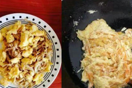 爆香了之后加入胡萝卜丝和金针菇一起翻炒,等炒熟了之后加入炒好的鸡蛋一起翻炒均匀,接着再加入适量的盐,起锅的时候撒上葱花即可起锅食用了。一道香喷喷的金针菇炒鸡蛋就完成了,是不是特别的简单啊?【女物原创未经允许,谢绝转载!】