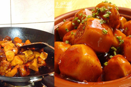 芋头首先小编要为大家介绍的是红烧芋头。需要准备的原材料有芋头、酱油、老抽、盐、青辣椒、香菜。首先将芋头清洗干净,然后去掉皮,切成滚刀状待用。接着在锅里加入适量的水,等水烧开了之后将芋头放入锅里,煮至六七分熟的时候捞能出来备用。(我们可以在煮芋头的时候往锅里加一些盐,这样芋头就更容易入味一些。)