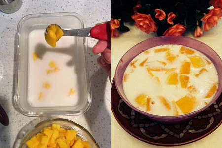 待其凉透之后,倒入芒果,并冷藏。