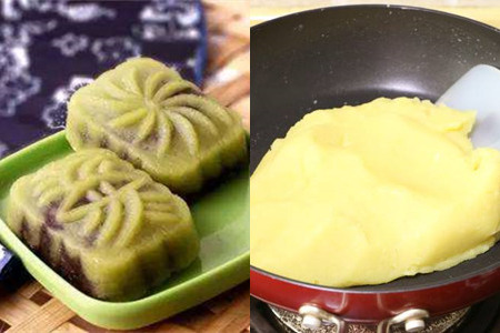 第二种点心是绿豆糕。需要准备的食材有一百克绿豆、四十克芝麻油、五十克细砂糖、二十克芽糖、适量豆沙馅。