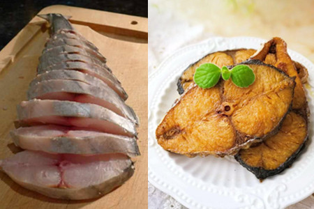 做法:鲅鱼去掉内脏后用清水洗干净。去掉鱼头鱼尾,去鱼的中断切成鲅鱼块,用盐均匀抹在鲅鱼块上腌10分钟。锅里面加入老生抽、白砂糖、料酒、八角粒、大葱段、姜片煮沸腾后出锅备用。