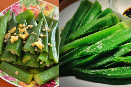 秋葵的做法多种多样,无论是凉拌、清蒸、爆炒还是油炸都可以。秋葵简单又不失原味的做法就是等热水沸腾之后放进去过一下,加一点盐和酱油就可以吃了。当然,秋葵还可以配合不同的肉类一起炒,既有肉的香味也不失秋葵的鲜味。秋葵可以和豆腐一起凉拌,把秋葵和豆腐蒸熟放凉后加入凉拌的调汁就可以了。