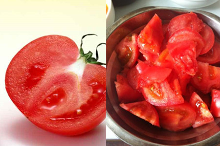 这道菜的食材都是比较有营养的,就算是老人,幼儿都是可以放心的吃的。那么番茄豆腐这道菜的做法也是比较简单的,下面为大家简单的介绍。首先我们要准备这道菜的食材之一番茄,将其用水清洗干净之后,然后用刀切成大小均匀的块状放在碟子里即可。番茄是一种富含多种维生素的一种果蔬,其中的特有物质对于预防皮肤衰老,抗衰老效果很好。