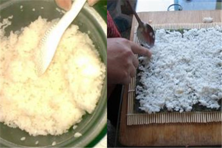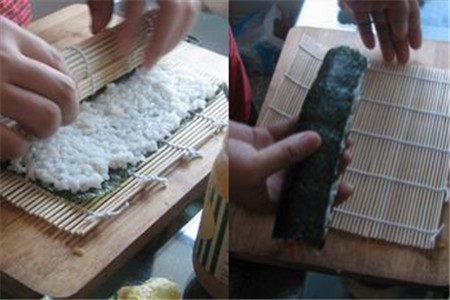 那么日本料理寿司是怎么做的呢?先准备好一份熟的米饭,还有黄瓜、酸萝卜、胡萝卜、肉松,当然如果自己喜欢吃什么就可以加一些进去,这看过个人的爱好。还有海苔、竹摊子。在熟米饭中加入适量的寿司醋,然后搅拌均匀。把黄瓜、酸萝卜、胡萝卜分别都切成丝条,放在一边待用。把准备好的海苔放一张在竹摊子上面。