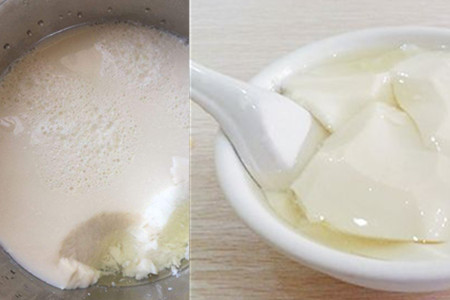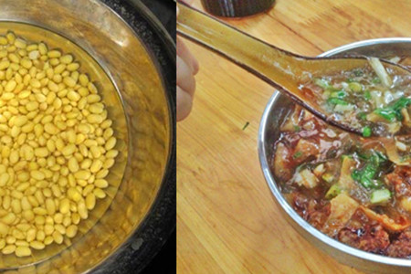 豆腐脑是豆腐的产物。在我们做豆腐时先出现的固体物质比较松软,不能成形,也不能用筷子夹起,这就是豆腐脑了。豆腐脑的做法也是很讲究的,我们选取新鲜的黄豆,前一天晚上用清水浸泡黄豆。同时我们还需要泡一些木耳,用于制作豆腐脑的酱汁。我们自己在家做豆腐脑,就用豆浆机就可以了,一般大型工厂制作的豆腐脑都是有专门机器制作的。