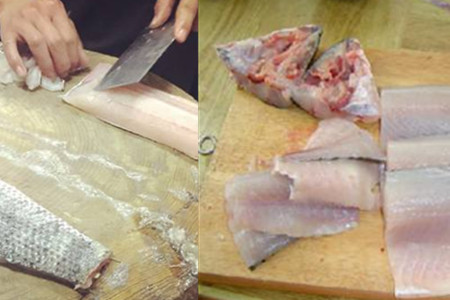 但是现在为了满足不同人群的口味,制作酸菜鱼的原料只要求味道鲜美就可以了。酸菜鱼的制作方法也非常简单,主要在于选取原料工序上要正确。事先准备好鲜嫩的草鱼,一颗酸菜,葱姜蒜,干辣椒,以及少量的花椒等。草鱼去头清洗干净,然后用菜刀从背部片成两片,然后再把每一片,切成两部分。去除鱼骨,按照鱼肉的纹理切成鱼片。