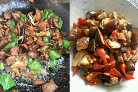 接着在锅里加入适量的油,等油烧热了之后将瘦肉丝倒进锅里翻炒,等到瘦肉丝炒到变色了的时候,就将它盛出来备用。接着将锅清洗干净之后,再在锅里的加入适量的油,等油烧热了之后放入姜丝、蒜片炒香。接着放入香菇、胡萝卜翻炒,等到香菇、胡萝卜炒到六分熟的时候,加入我们刚刚炒好的肉丝,一起炒均匀。