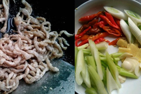 首先我们将猪瘦肉洗净切成丝,然后用料酒,盐、油、淀粉、鸡蛋清、生抽搅拌均匀之后腌制十分钟左右。接下来将胡萝卜清洗干净,然后切成丝备用。香菇洗净去掉菇柄之后,用手挤掉多余对我水分,然后切成薄薄的片备用。(小编在这里选择的是新鲜的香菇,因为新鲜的香菇炒出来口感会更加的好。)葱切成段,姜切成丝,蒜切成片,葱切成葱花备用。