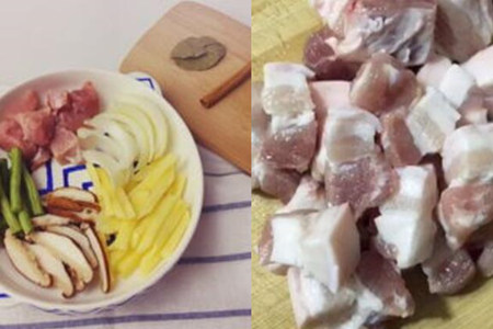 红烧肉就是要油而不腻才行,选择新鲜的五花肉更加适合做红烧肉。把买回来的五花肉一定不要去皮,如果肉去掉皮就做不出真正美味的红烧肉了。都切成2cm左右的大小,这样之后一定要用开水烫一下才行。使用开水烫的情况下就是为了防止炖肉的时候出现沫的情况。