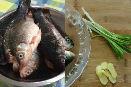 需要准备的材料有:新鲜的活的鲫鱼(尽量选择野生的小鲫鱼),鲜葱2到3根,姜一块,食盐。