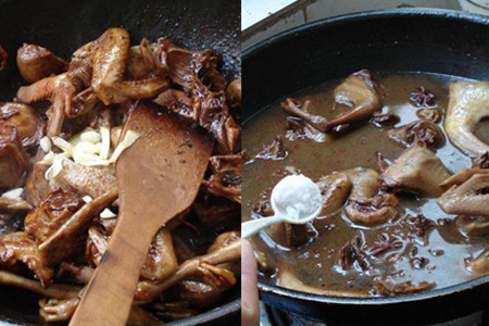 如果喜欢软烂的鸽子肉,可以多加些清水,焖煮时间也适当延长。焖煮过程要适当翻动几次,这样可以防止黏锅,焖煮至汤汁浓稠,鸽子肉酥软即可。