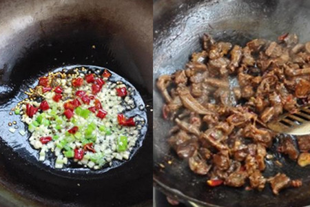 食材:熟乳鸽肉250克、干辣椒、花椒、葱、蒜、姜、油、海鲜酱、柱候酱、豆瓣酱。