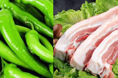 第一步,准备好食材。准备好尖椒、五花肉、面粉、花生油、食盐、香醋和鸡精。在这里,喜欢吃辣的可以选择偏辣的杭椒,不能吃辣的可以选择不辣的尖头青椒,但无论是哪一种都要选择颜色偏黄,质地偏脆的新鲜嫩尖椒。五花肉应该选择肥瘦适宜的五花肉,四份肥六分瘦的就很好,一定要确保肉质的新鲜哦。