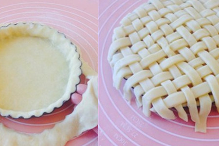 再将面片切成条状,并用编织法来覆盖苹果馅料。用擀面杖压实边缘,并在苹果派上涂抹蛋液,这样做是为了让苹果派的色泽更加诱人。先用200度烤15分钟,然后改成170度25分钟即可。【女物原创未经允许,谢绝转载!】