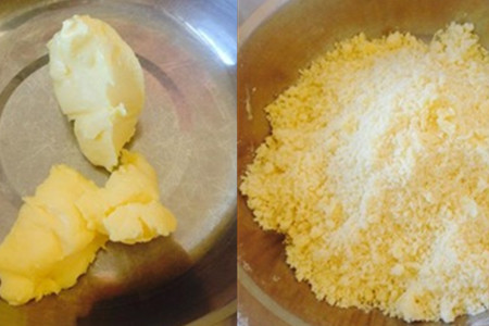 首先,我们应该准备好原料,包括:黄油、白砂糖、苹果、面粉、肉桂粉、盐、蛋液。准备好这些原料就可以开始我们今天的制作了,首先,我们将黄油放进锅中融化。再加入适当的面粉和白糖,一起均匀搅拌成颗粒状(比例参考6:15:1)。