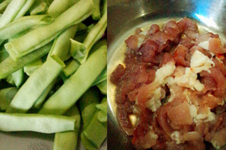 需要准备的食材有:扁豆300克、猪肉200克、生面条300克、番茄1个、醋、生姜、蒜、八角、料酒、生抽、老抽、蚝油、豆瓣酱、尖椒、卤汁、五香粉、白糖。