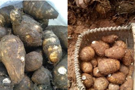 芋头,别名又称芋,是一种长作为一年生作物来栽培的多年生茎块植物,一般呈球茎状。果实生长在地下,长在地面上的叶片呈盾形,拥有长且肥大的叶柄,颜色一般为绿色或者紫红色。而植株的基部会形成一个短缩茎,逐渐积累养分之后就会形成一个肉质的球茎,经过不断长大,扩张之后就会形成芋头,有时会形成多头芋,芋群等等。