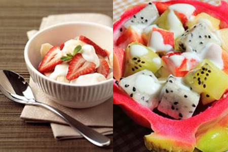 很多人认为水果沙拉不过就是把水果切成丁,再挤上从超市买回来的沙拉酱就可以。其实不然,从营养角度上来说,水果的搭配还是很有讲究的。而且沙拉酱中含有大量的脂肪,不符合低脂的要求,所以这里就教大家如何做出一份低脂美味的水果沙拉。